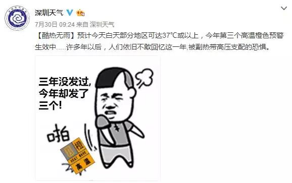 深圳气象台不知道发布了多少个高温预警信号
