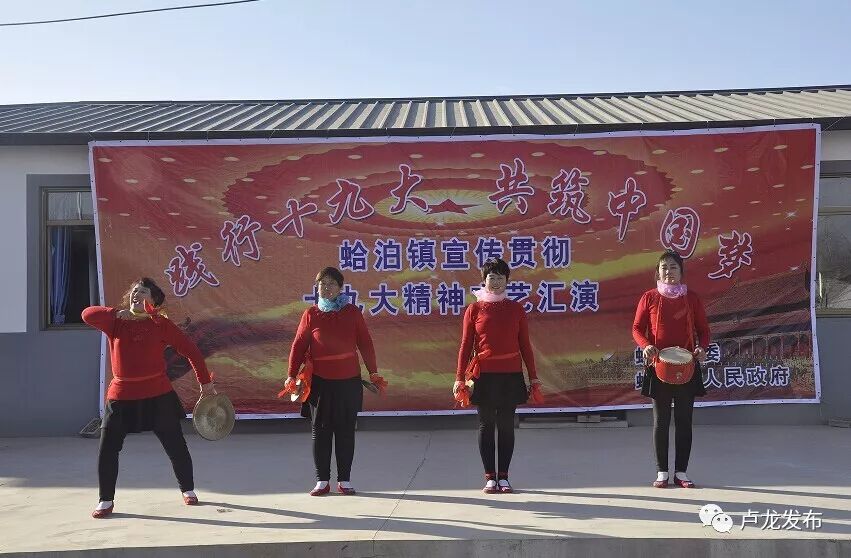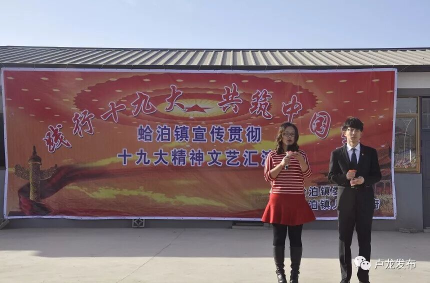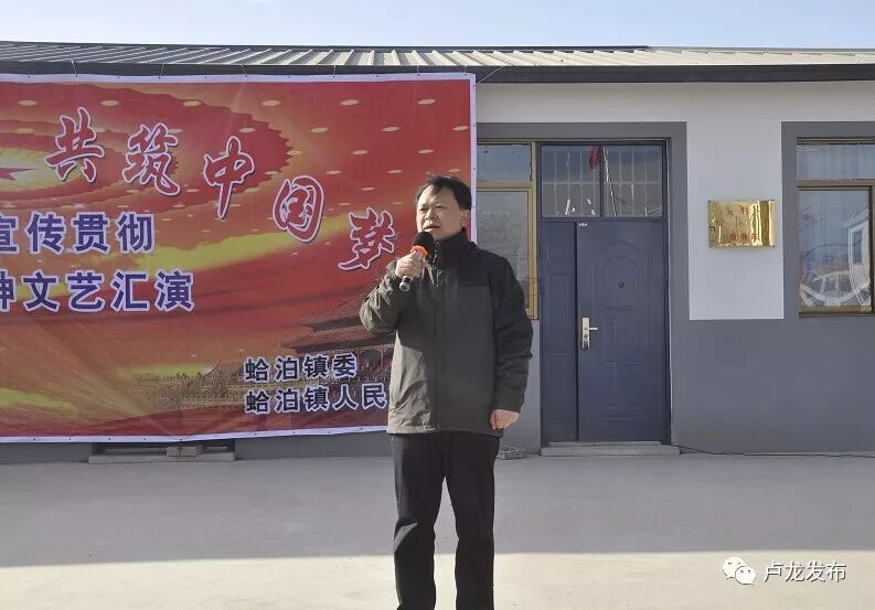 12月25日,蛤泊镇在王深港村举行“践行十九大,共筑中国梦”文艺汇演,来自蛤泊镇的文艺爱好者表演了《宣传十九大》《走进新时代》《撸起袖子加油干》《八大嫂夸十九大》等11个节目,展现了广大群众坚定不移跟党走的决心和信心。现场还发放了十九大知识明白纸,并通过十九大知识抢答形式,来进一步宣传十九大精神。县委常委、宣传部长胡瑞东参加活动并致辞。