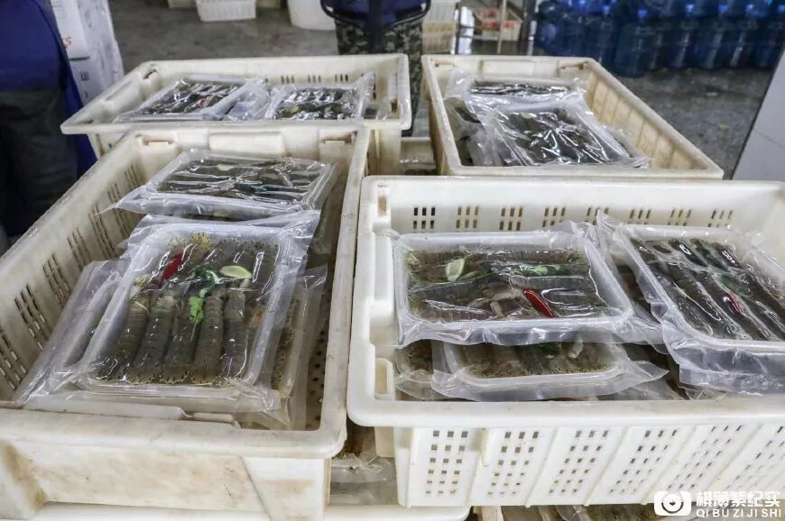 生腌虾爬子经过真空包装后送往冷库冷藏。截至目前,已经有将近10万斤生腌和煮熟的虾爬子储藏在这个加工厂的冷库,并将在一两个月后上岸海鲜减少的时候陆续进入本地和外地市场。