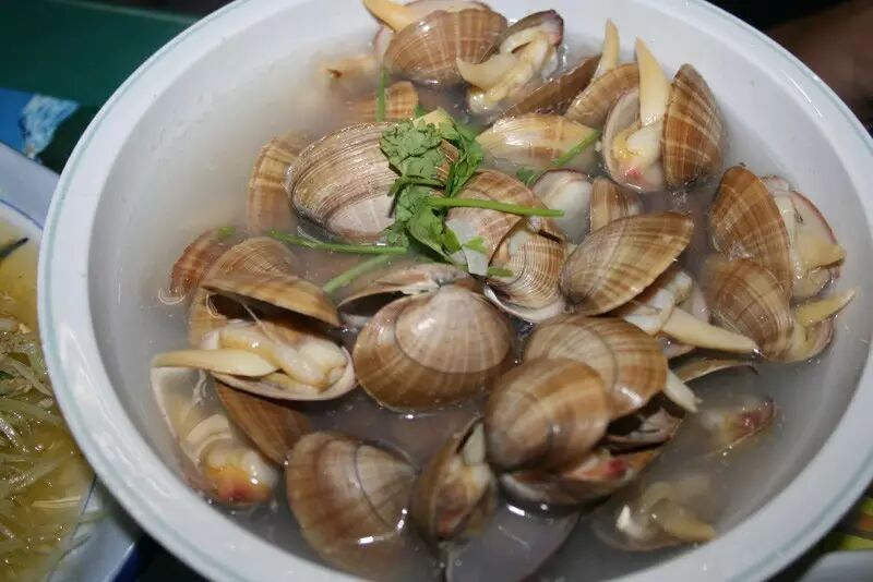 红岛光蛤蜊种类就有十多种,除了我们所熟悉的红岛杂色蛤以外,还有毛蛤、冒子头蛤、抱鸽头蛤、象拔蚌蛤、双咀蛤、兰蛤等品种,5、6月份是蛤蜊最肥的时候。