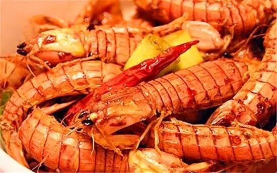 腌制皮皮虾——潮汕人喜欢把濑尿虾用盐、姜和酱油等调料腌制,然后去壳取肉生吃,据说有活血生津、壮阳补肾、滋阴健胃等功效。
