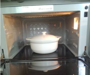 微波碗加盖,放进微波炉中选择中高火,叮3分钟;