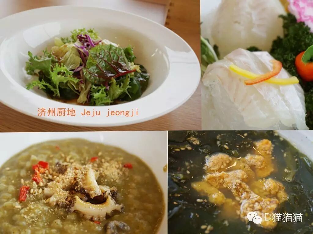 毕竟每一餐济州的美食我都会尽量详尽的把菜品拍全给大家看,但是,重复的小菜类,我也就是拼拼图,给大家略讲讲不同就好~但是,好吃是好吃的,没有打折不说!我觉得这家店儿配料上甚精致!有点像私房料理那种感觉~尤其是加了海胆的海带汤,老板,请再来一碗么么哒~还有鲍鱼粥嗯,老板说别看它颜色丑,好像粥很绿,那是因为鲍鱼内脏加的多,货真价实的营养丰富才会这样!哈哈哈~果然,老板说完我立刻干了这一碗~8好意思,展现我食力的机会我从来没放弃过~