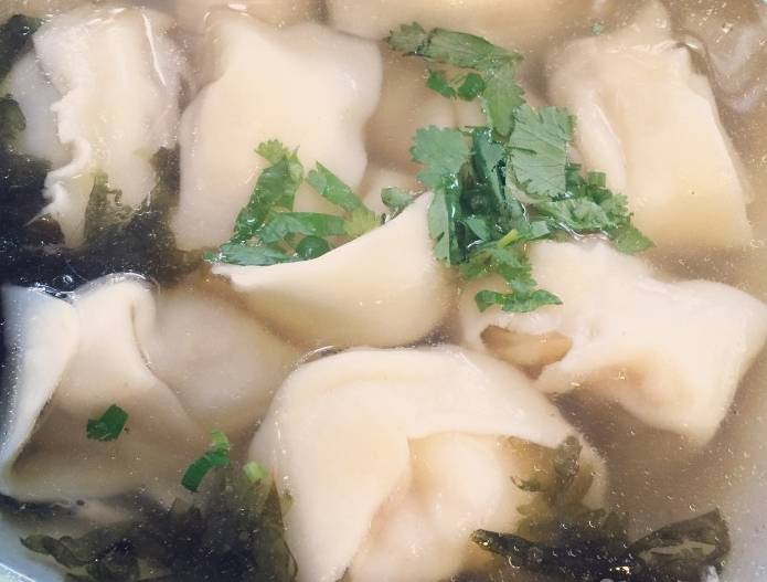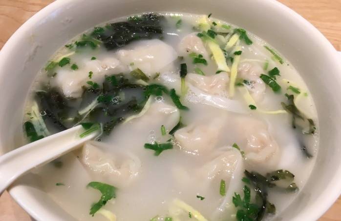 鲜肉馄饨:鲜肉搭配素菜,汤用大棒骨熬制而成,可谓是鲜美无比,馄饨侯的整碗馄饨都是用心而成。