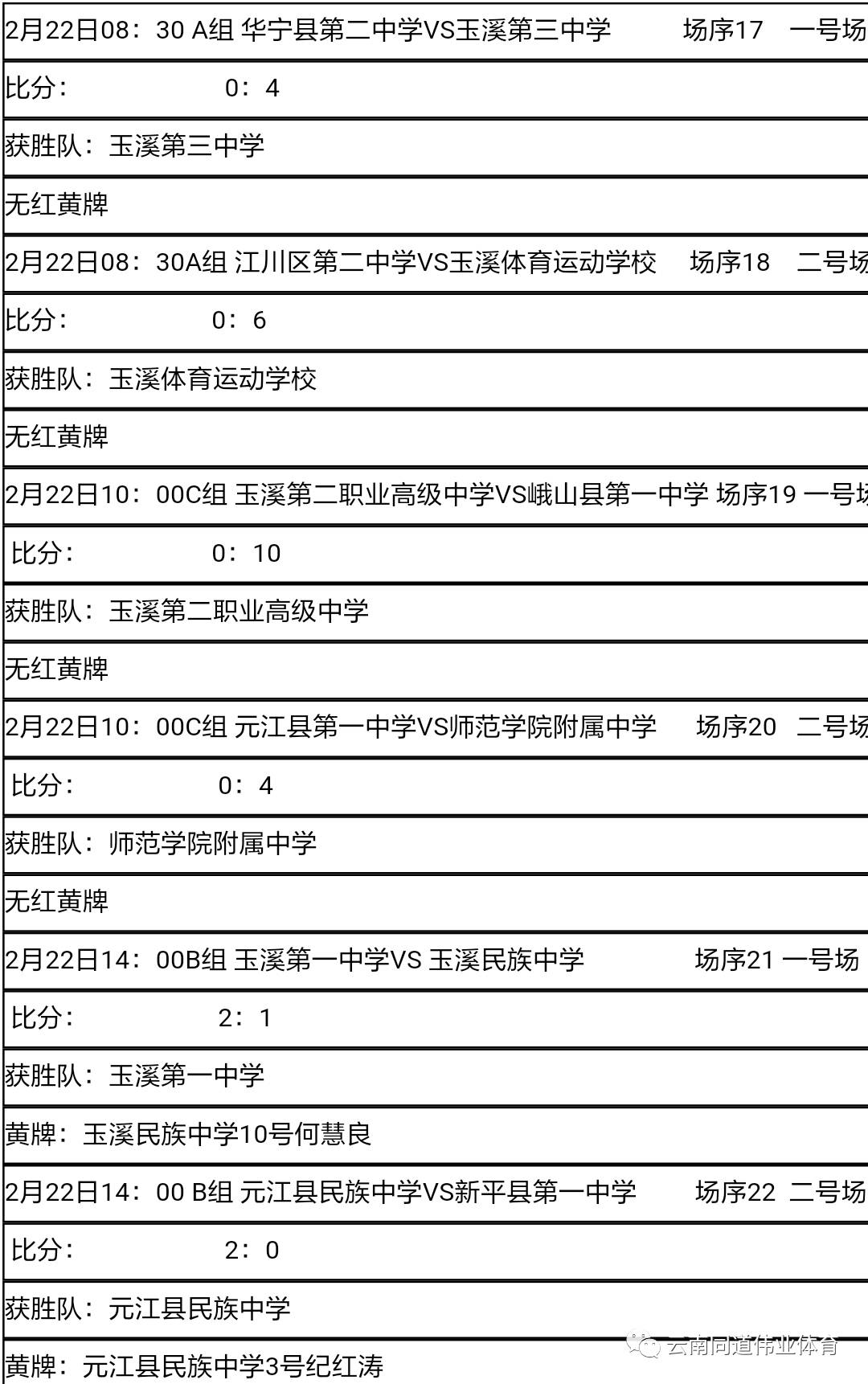 哈喽大家好!小编又来啦!2017年玉溪市青少年校园足球选拔赛暨啦啦操比赛 今日调整休息,明日精彩继续!完成2.20~2.22为期三天紧张又残酷的小组赛后, 明日高中组比赛将进行到第二阶段。先来了解一下高中组详细赛况吧!