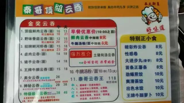 美女云吞、神秘云吞、特级金奖云吞……价格就明显贵了很多,26元一碗到46元一碗、最贵的泰哥云吞王更是118元一碗!
