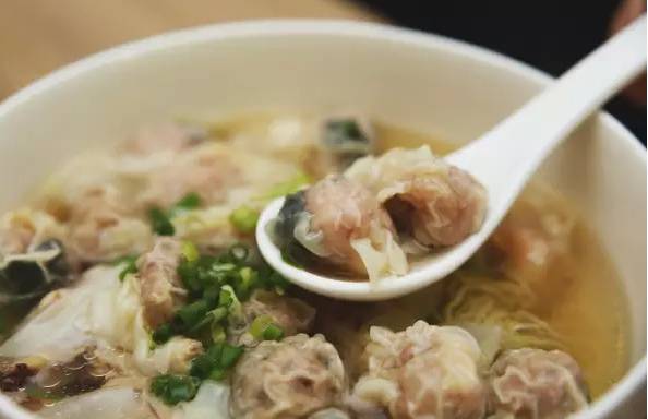 看上去虽然和普通的云吞没有什么分别,但喝了一口发现汤底是炖汤,老板泰哥介绍,这个云吞是用的是特级靓肉,每头土猪仅有8两肉可用,所以价值高。
