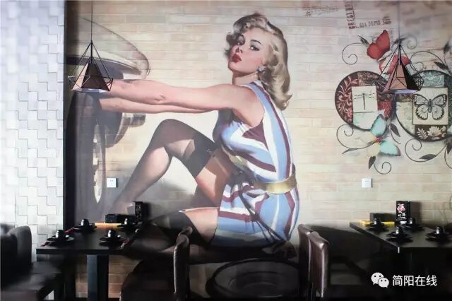 墙上的墙体彩绘栩栩如生,看着性感的梦露就餐,怎能不让人心情愉悦!