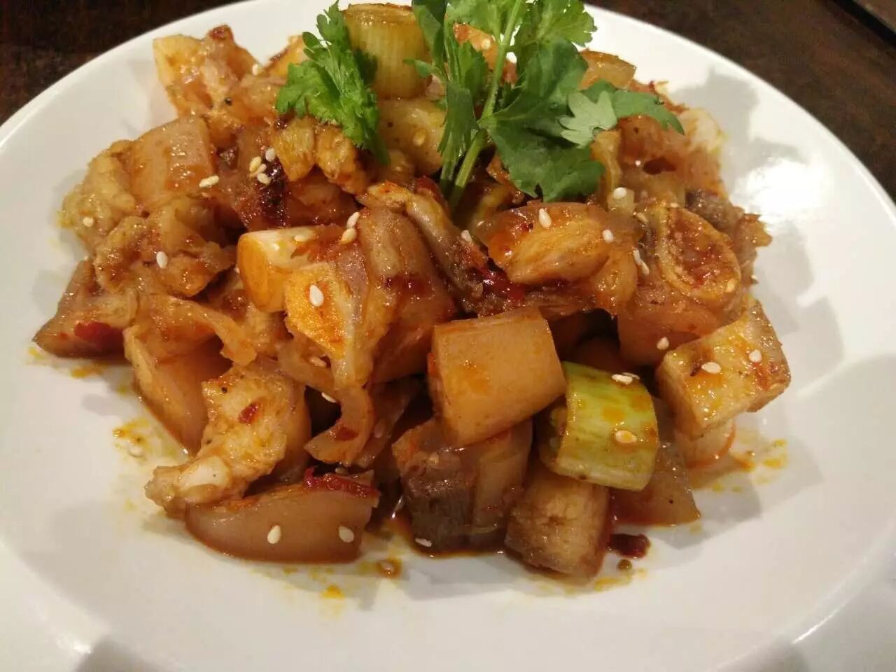 大刀耳片---这是一道四川人再也熟悉不过的菜了,任何场合似乎都有它的影子,可见地位之高。越是常见的菜越是考验一家餐馆厨师的水平。看起来很家常,但是在这里你一定能吃出不一样的味道和感觉。