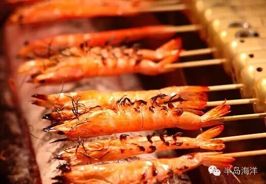 2、烧烤:红虾解冻去沙筋,用生姜、葱、盐、胡椒粉、白葡萄酒腌制5分钟,放入烤箱(温度调最大)烤8分钟左右,虾头出水即可。