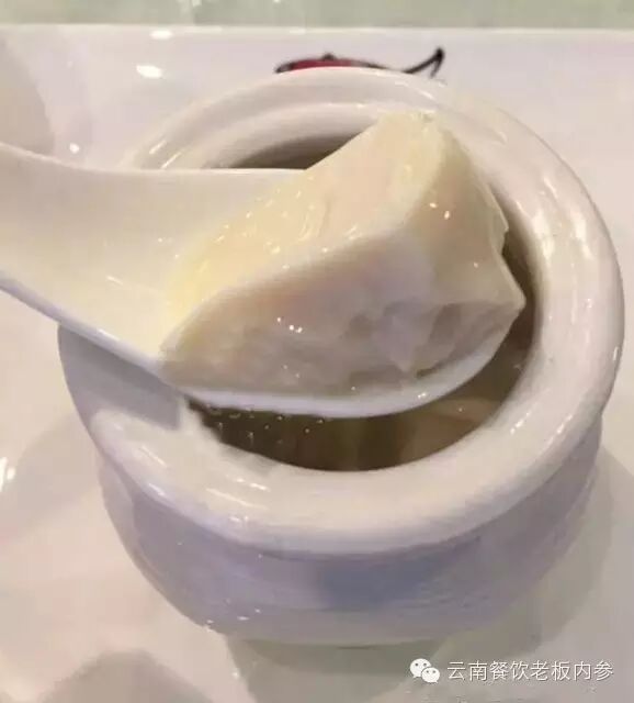 冰豆花是用黄豆做的,飘着豆香味,吃到口中冰冰凉凉的,类似果冻,再搭配上桂花酱、果酱、果粒等调和一下,就是一道夏季的畅销甜品。冰豆花是一道制作简单,一份卖8元,还是一款高毛利新品。