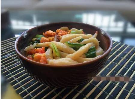 是晋南(山西运城,临汾),晋中、晋北等地区流行的一种风味面食。它吃着筋滑利口,制作简便,随乡就俗,适用多种面粉和浇头,又加制作简便,倍受群众欢迎。在晋中一带,人们用白面、高粱面制作;在雁北、忻县高寒地区,人们用莜面、荞面制作,取名“碾疙瘩”,还名“碾饦饦”。尤其因莜面制作柔软,还能碾推成花纹、触须等式样,更使这种面食形象多彩多姿。