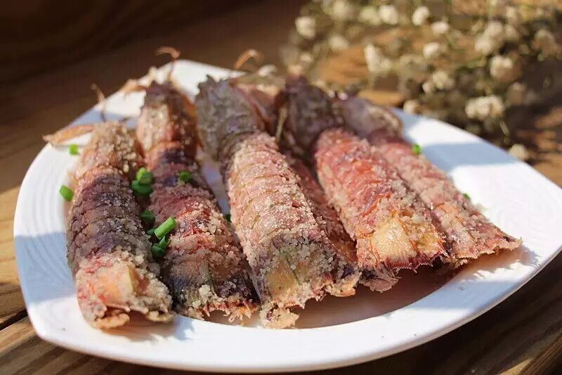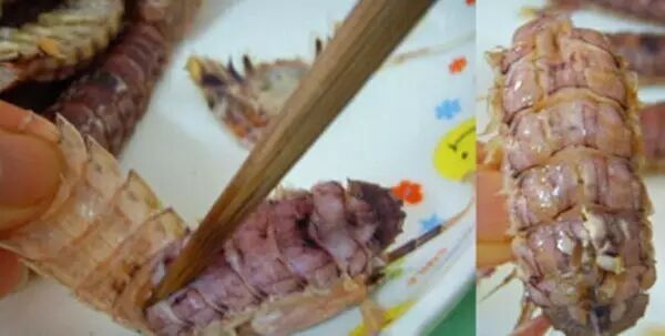 它还含有大量的甜味和鲜味氨基酸,肉质比龙虾鲜嫩,味美可口。长长的腹部剥开就是一条肉,还有富含胆固醇的金黄色卵巢。