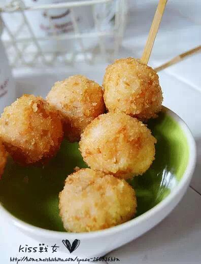 调料:淀粉(适量)、鸡蛋(1个)、面包粉(适量)、椰子粉(适量)