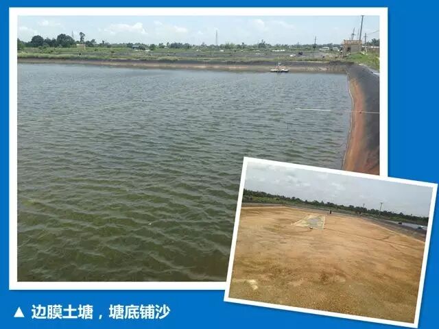 ★ 塘边铺膜,固塘保水。为给虾提供适宜生长环境,在原泥沙底的基础上,进行塘底改良,铺一层约10cm厚的海沙。收虾后及时清洗、暴晒和平整。