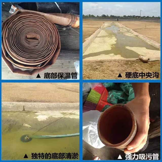 ★ 塘底差、排污困难是导致党江成功率连年低下的一个顽症。杨老板的独门武器是:硬底排污沟+吸污处理。,视养殖情况每天用强力吸污泵吸污1-2次。为避免吸到虾,吸污安排在刚喂完料后进行。