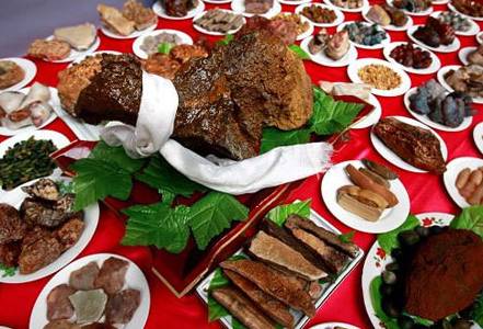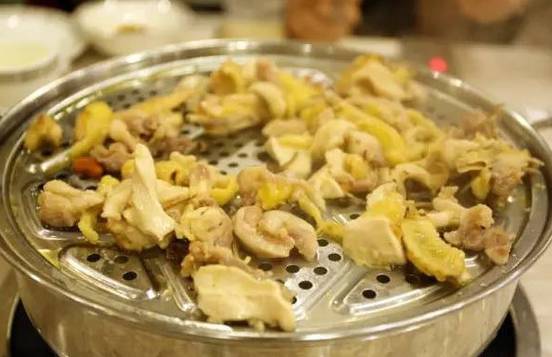 先吃鸡,然后糯米饭混着芋头和胜瓜,