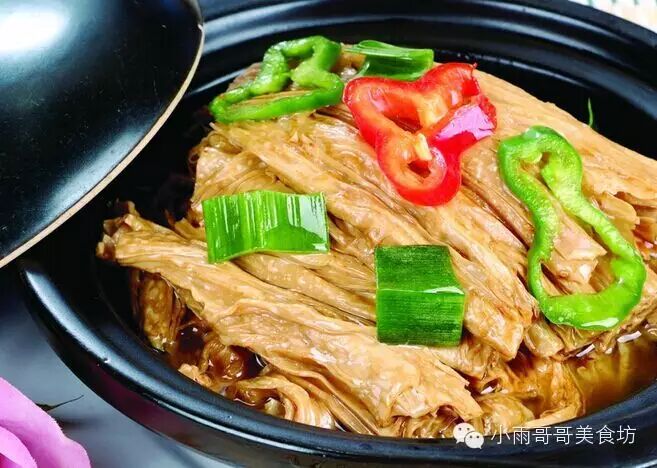 5、腐竹8成熟放些青菜,我习惯放上还青;