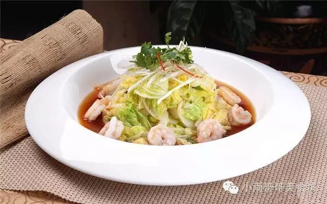 (3)然后加入泡透的干虾仁,调入味精,白糖炒透,用湿生粉勾芡,淋入熟鸡油即可。