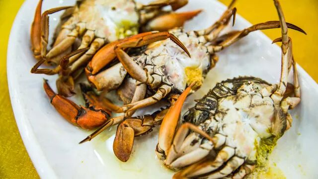 珠海地处珠江和西江的出海口,咸淡水交界,这里盛产的蚝和白蚬是膏蟹的上等食料。蟹肉厚膏多,膏充满蟹盖,炮制“蟹黄扒瓜甫”、“蟹肉炒鱼肚”、“蒸膏蟹”及“蟹肉银针桂花翅”、“稣炸蟹盒”等菜式堪称佳馔,可谓“蟹封嫩玉双双满,壳近红脂块块香”。