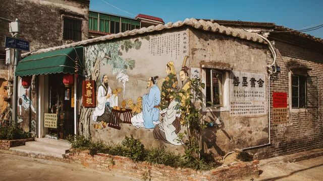 一条小资情调的山房路贯穿全镇,漫游当中仿佛能隐约窥见旁边破落老屋昔日的富庶繁荣。如今这些有故事的古屋多被用于开设中式茶馆、书画室、制陶坊、咖啡店等,墙上的趣味涂鸦更为老街抹上一层艺术的亮色。