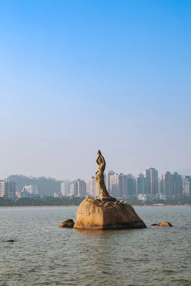 渔女雕像是珠海城市的象征,重要程度不亚于丹麦哥本哈根的小美人鱼铜像。她用10吨洁白花岗岩雕琢而成,姿态优雅,神情喜悦,手擎明珠,向人类奉献珍宝,开创了中国大型海滨雕像之先河。渔女亭亭玉立于水波中,映衬着珠海日新月异的城市天际线,也肆意撩拨着四方游人沉醉的目光。如果您来到珠海却没去探访她,便少了一分旅途中神圣的仪式感。