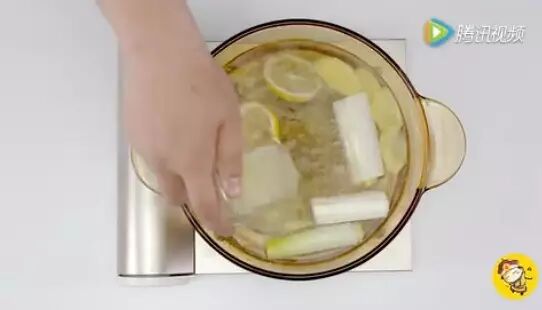 柠檬切片,大葱切段