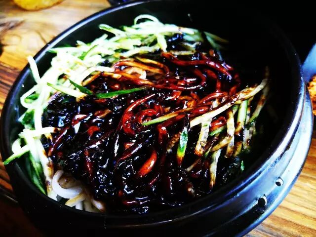 它家的炸酱面,超级好吃~韩式面条上面满满的一层肉酱,酱香味超级浓!