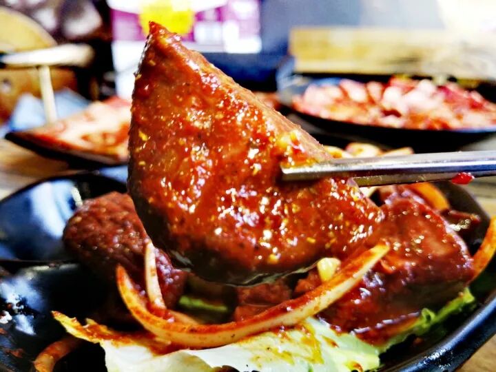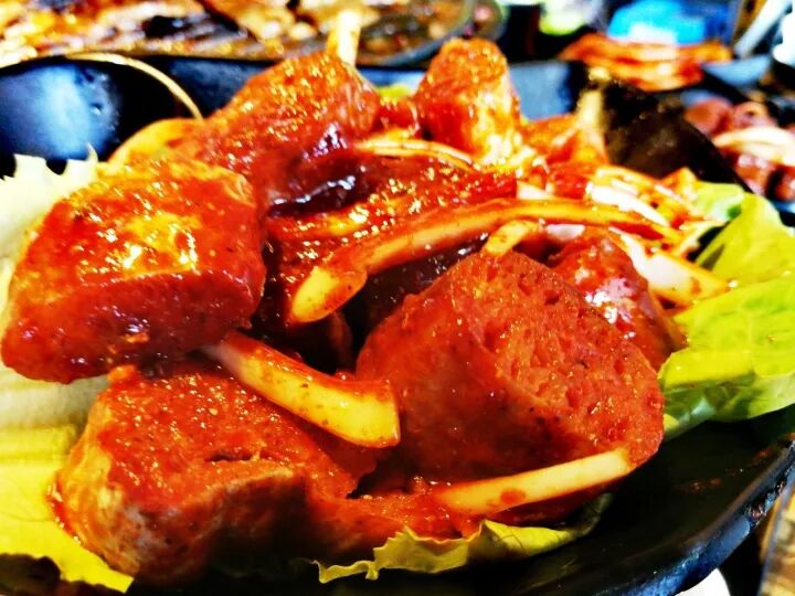 没想到这家以烤肉为主的店连汤都做得这么美味!和许多以辣味为主的汤品不同,这道海鲜嫩豆腐口味比较清淡,用嫩豆腐和各种海鲜一同熬制,嫩豆腐口感十分鲜嫩,仿佛不像在吃豆腐而是在吃豆花,非常地好喝!