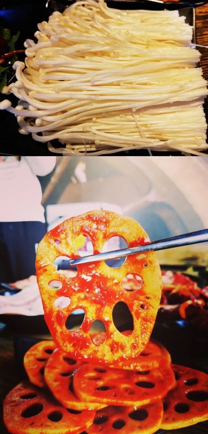 其实不光是烤肉,中场的时候烤点素菜会很清口!我比较喜欢这个莲菜!是由辣酱刷过的,不蘸小料能直接吃!