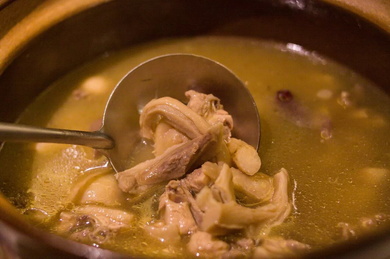 黄酒度数不是很高,喝起来有种糯糯的甜味,黄酒渗入了猪肚鸡内,鸡肉嫩滑,酒味飘香,吃着都有种感动的感觉。