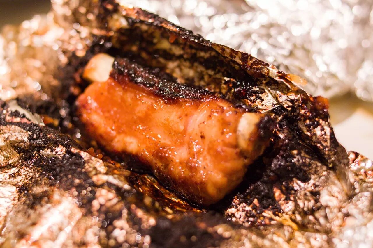金光灿烂的排骨散发出最诱人的滋滋香味,热气腾腾的骨汁尽情地在锡纸上翻滚,一口咬下去,鲜嫩的肉质在唇齿间迸射出甘咸中带点鲜甜的浓烈口感。