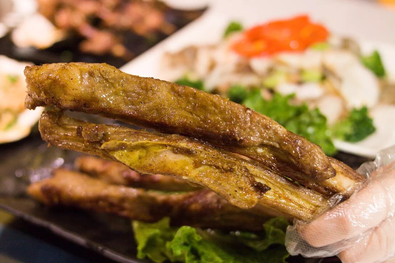 烤羊排肥瘦相间,刚咬下去是酥脆的外层,充分感受到浓郁的羊肉香味从喉咙蔓延至整个鼻腔,再之则是诱人犯罪的浓密油脂,肥而不腻,奶香回甜。