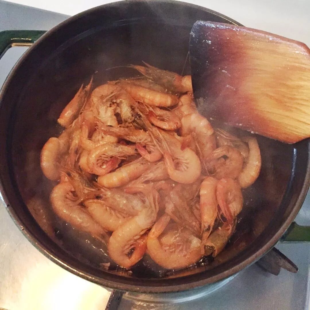 比起阿根廷红虾,我们中国黄海沿海的红虾,个头小,外壳稍硬,所以用大火热锅,用油爆炒一下会很香,尤其虾头有虾膏的话,炒完真的很香。