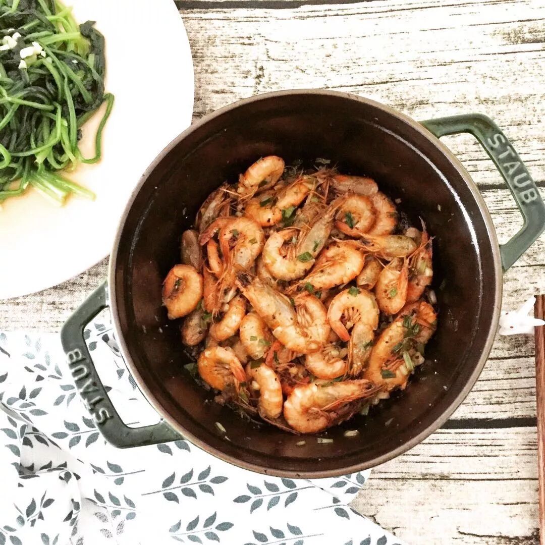 这道菜用的是冰鲜的小红虾,虾壳稍脆硬,易用油炒香,再加上黑胡椒,油温让椒香辣去腥,虾肉混着葱蒜汁口感香弹……下面就开始准备开始做吧。