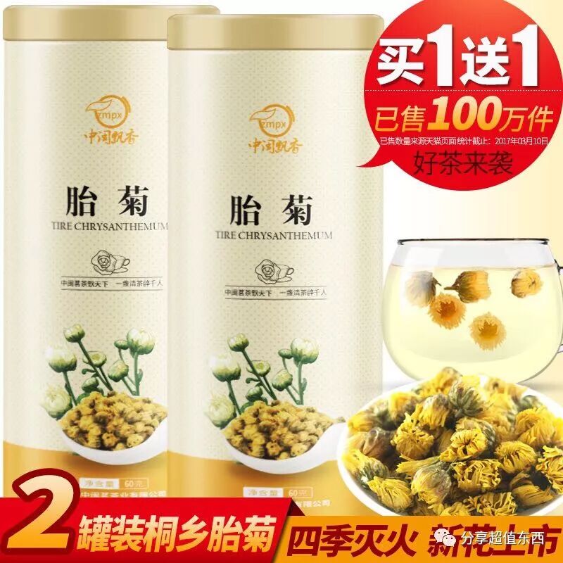 【买1送1】 菊花茶 花茶 桐乡杭白菊茶叶胎菊王花草茶可搭金银花【包邮】