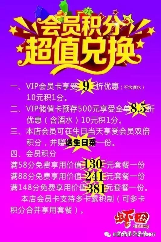 免费办理会员卡,积分兑换套餐免费吃,积的越多吃的越多