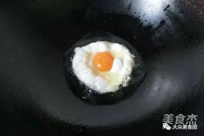 4.接着将鸡蛋打入锅中煎荷包蛋;