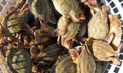 质量好的海蟹,鳃丝清晰,白色或稍带微褐色。质量次的海蟹,鳃丝尚清晰,色变暗,有异味。新鲜海蟹,刚捕获不久的活蟹,肢体连接紧密,提起蟹体时,不松弛也不下垂。活蟹反应机敏,动作快速有力。次鲜海蟹,生命力明显衰减的活蟹,反应迟钝,动作缓慢而软弱无力。肢体连接程度较差,提起蟹体时,蟹足轻度下垂或挠动。 都说眼睛是心灵的窗户,鱼也如此,看鱼的眼睛,也能看出鱼的好坏。一目了然,眼膜健全、透明清亮的是鲜鱼;不新鲜的鱼一般眼膜有血丝,眼珠不突出。