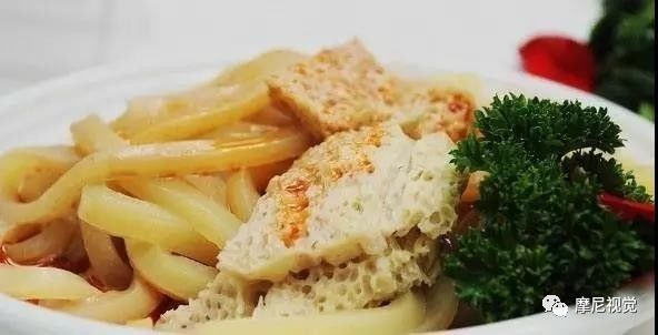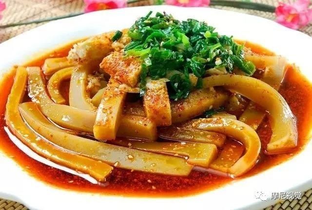 它和凉皮还不一样,酿皮子厚厚的,而且是黄色,吃起来比较筋道。加上各种调料之后,味道爽口生津,是回族的特色小吃。