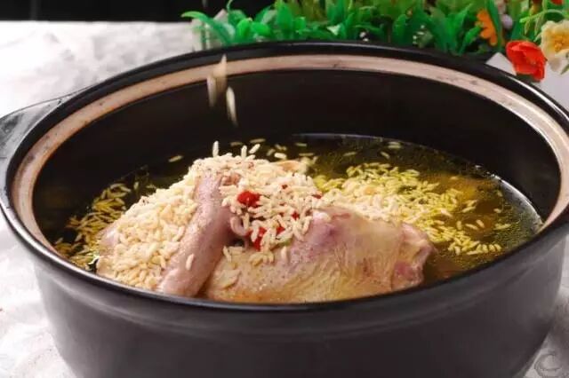 山粉红烧肉,鸡汤泡炒米。