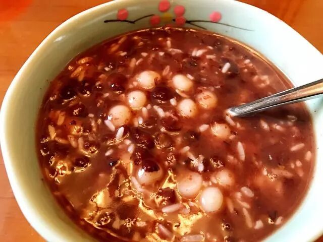 赤豆酒酿糊,鸭血粉丝汤。