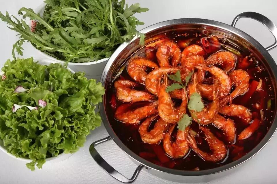 虾火锅以南美白对虾为主要食材,长度可达24cm,用火锅的方式烹饪,这种做法可以避免多余的调味料和添加剂,保持海鲜原有的风味。