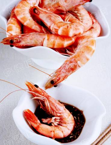 4. 将虾捞出泡入凉水,后沥干净水。准备好喜爱的调味料蘸来食即可。