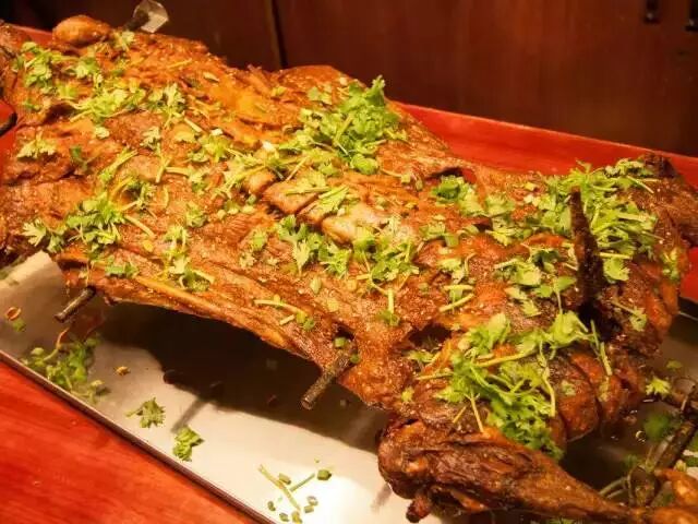 着数君期待已久的烤全羊终于上桌了!烤全羊的诞生需要经过多重复杂的工艺,丝毫不得马虎,建议各位小伙伴要提前预定,不然就会像着数君一样要等很久咯!